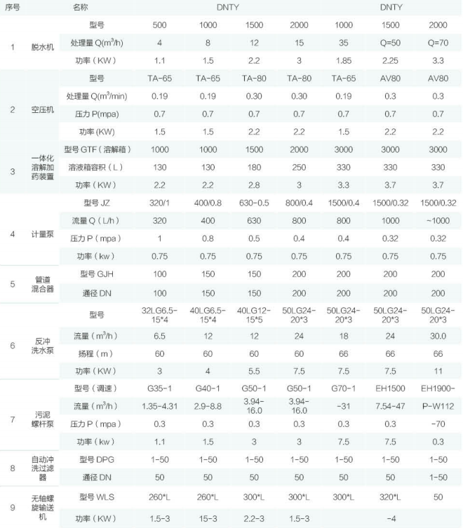 注:上表配置僅為參考,若污泥性質(zhì)和使用藥劑不同,配置應(yīng)相應(yīng)更改。